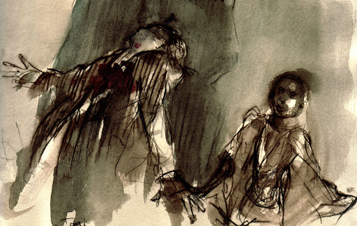 The second story Gustav shares is a direct counterpoint to the first one. Gustav recounts the story of his dead fiancée Mariane, who died to save Gustav’s life by valiantly lying to an angry mob and claiming that she was not engaged to him. Guvtav refers to her exclusively as the “faithful” Mariane. By reducing Mariane’s life and legacy to her martyrdom, “faithfulness” is elevated as not only the single, defining requirement of a lovable wife, but also as a defining requirement of a White woman. Where the first anecdote of the ‘Black seductress’ crystallises what Gustav did not want Toni to be, this second story lays down who he does want her to be. This is achieved by his mythologised descriptions of Mariane: “‘it was her death alone that taught me [Gustav] the very essence of all goodness and nobility”’ (Kleist 246). His words are interconvertible – they portray death for one’s beloved as the highest form of morality and the greatest evidence of pure, ‘noble,’ ‘White’ love. By his own characterisation, Mariane’s death was the truest love language Gustav knew, and this foreshadows Toni’s determination to speak it. To Toni, sacrifice becomes a sure-fire model to both capture Gustav’s eternal affection, and to reach Whiteness itself. She “exulted in the prospect of dying in this enterprise designed to save his life” (Kleist 262). Her inevitable death is alluded to through the recurrent imagery of her smallness and her collapse. As Gustav narrates the mournful tale of Mariane, Toni is “lowering her great black eyes with a sweet air of modesty” and “murmer[s]” “without raising her eyes to him” (Kleist 246). She is so close to the ground through her mannerisms and countenance, her eventual burial is inscribed into the text all through the novella. Most vividly, when he lifts her, she is simply “hanging over his shoulder like a lifeless thing” (Kleist 248). The imagery seems to suggest that despite his commitments to rescuing her from what he (wrongly) sees as a ‘dishonourable’ Black life in Haiti, Gustav cannot or will not lift Toni to vertical heights of mobility or Whiteness. Instead, he can only hold her falling body when she is drooped down like a corpse.