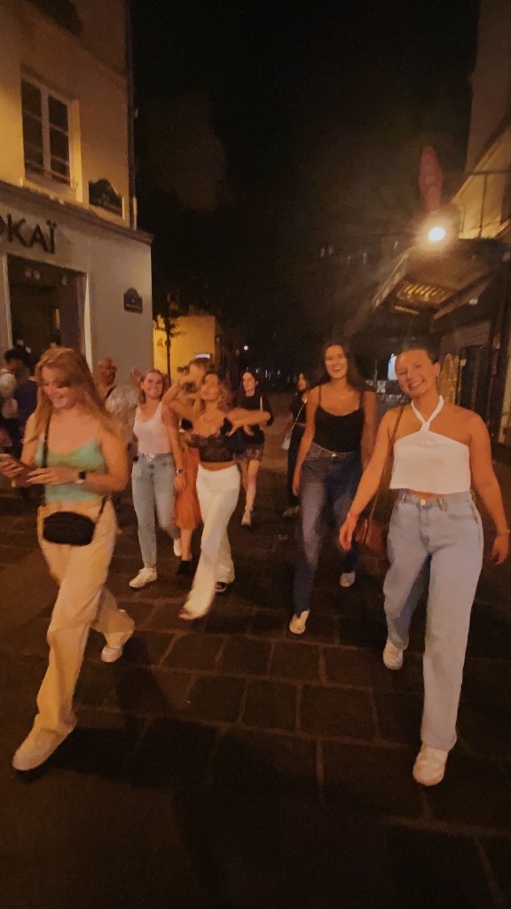 We finally end at a garden by the Louvre, and there are girls from another group crying as they bid farewell to their team leader. I am stunned at their emotions, having attained little allegiance to anything but myself in this past week. The girls from my group decide to go get drinks afterwards. Exhaustion wanes us down to just three at the end – me, a girl from Australia, Madi, and one from the US, Audrey.
